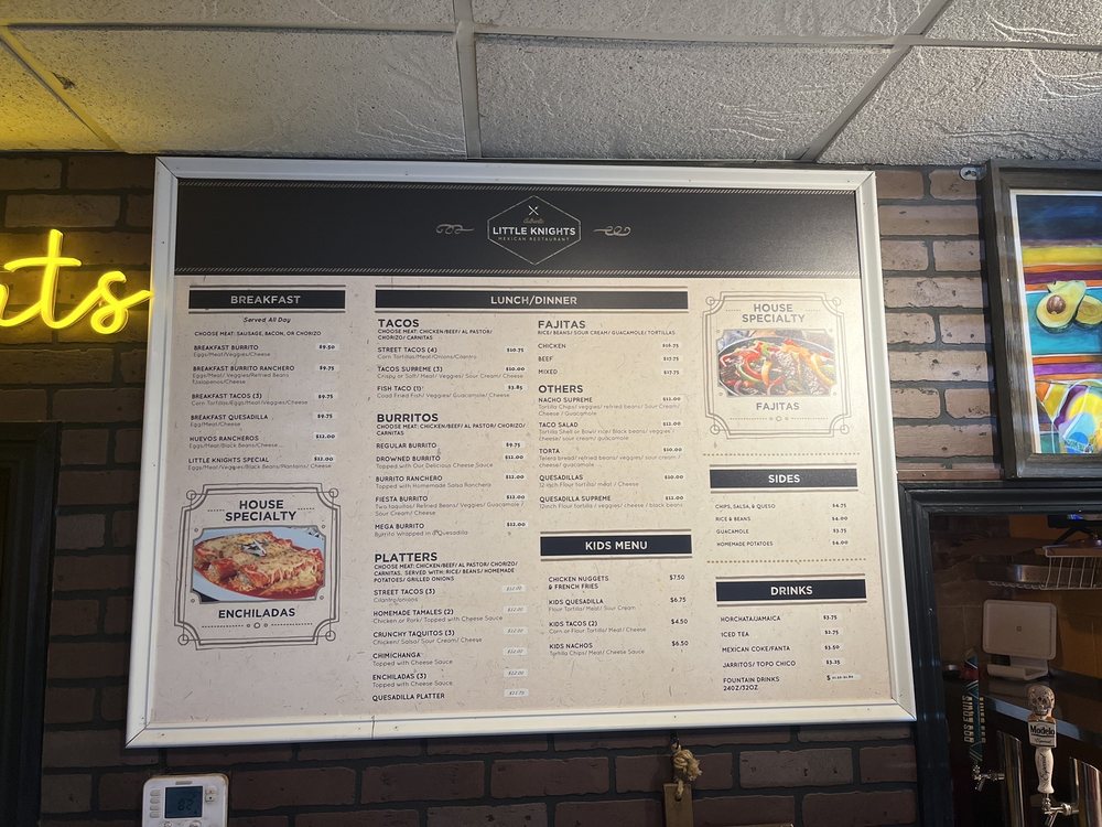 Welcome to Little Knight's, a charming food truck in Edmond, Oklahoma, that brings the vibrant flavors of Mexican cuisine to its patrons. Nestled at 2917 E Waterloo Rd, this family-owned gem offers a cozy atmosphere that caters to diners seeking a casual yet delightful experience. With outdoor seating and convenient private lot parking, it’s an ideal spot for a relaxed meal.